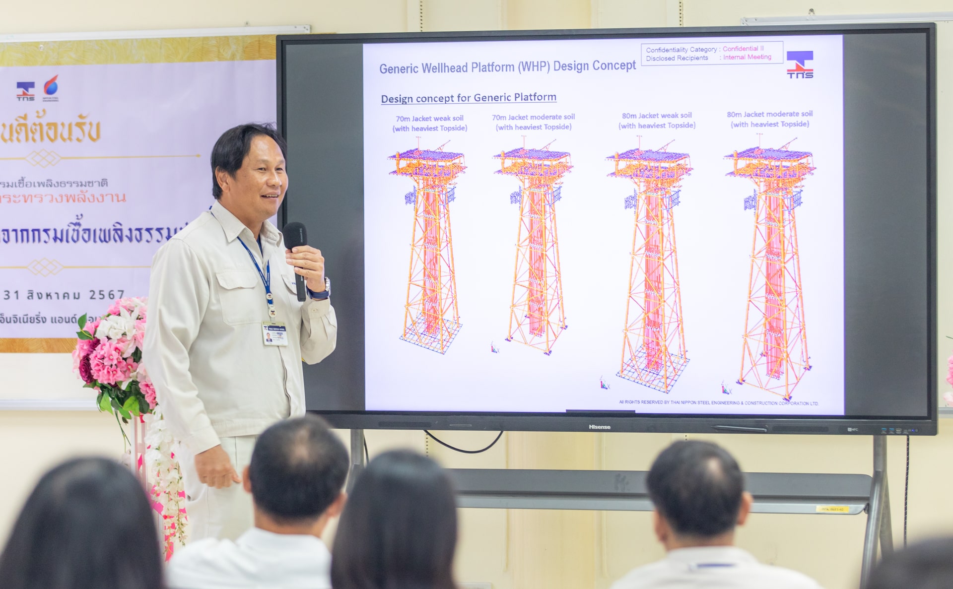 31 August 2024 – Mr. Pipat Jirapongpipat Director of Production sharing contract Division from Department of Mineral Fuels and 60 member team from DMF took time out to visit TNS at Bangpakong yard. In this regard, Mr. Virach Tantivipa – Chief Operating Officer has addressed the warm welcome remark. For the yard tour, our management have led the tour.