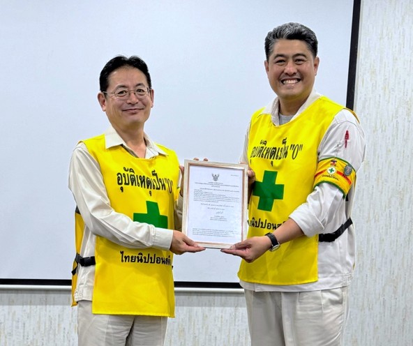 To commemorate this achievement, a handover ceremony was held on 11 November 2024 at BPK Yard, where Mr. Jeerawat Charoenpol, General Manager of Health, Safety, and Environment (GM-HSE), represented the TTC team in formally presenting the certification to Mr. Masaya Watanabe, Chief Executive Officer of TNS. The event was attended by TNS senior management as well as subcontractor representatives, highlighting a shared dedication to elevating safety standards across all operational levels.