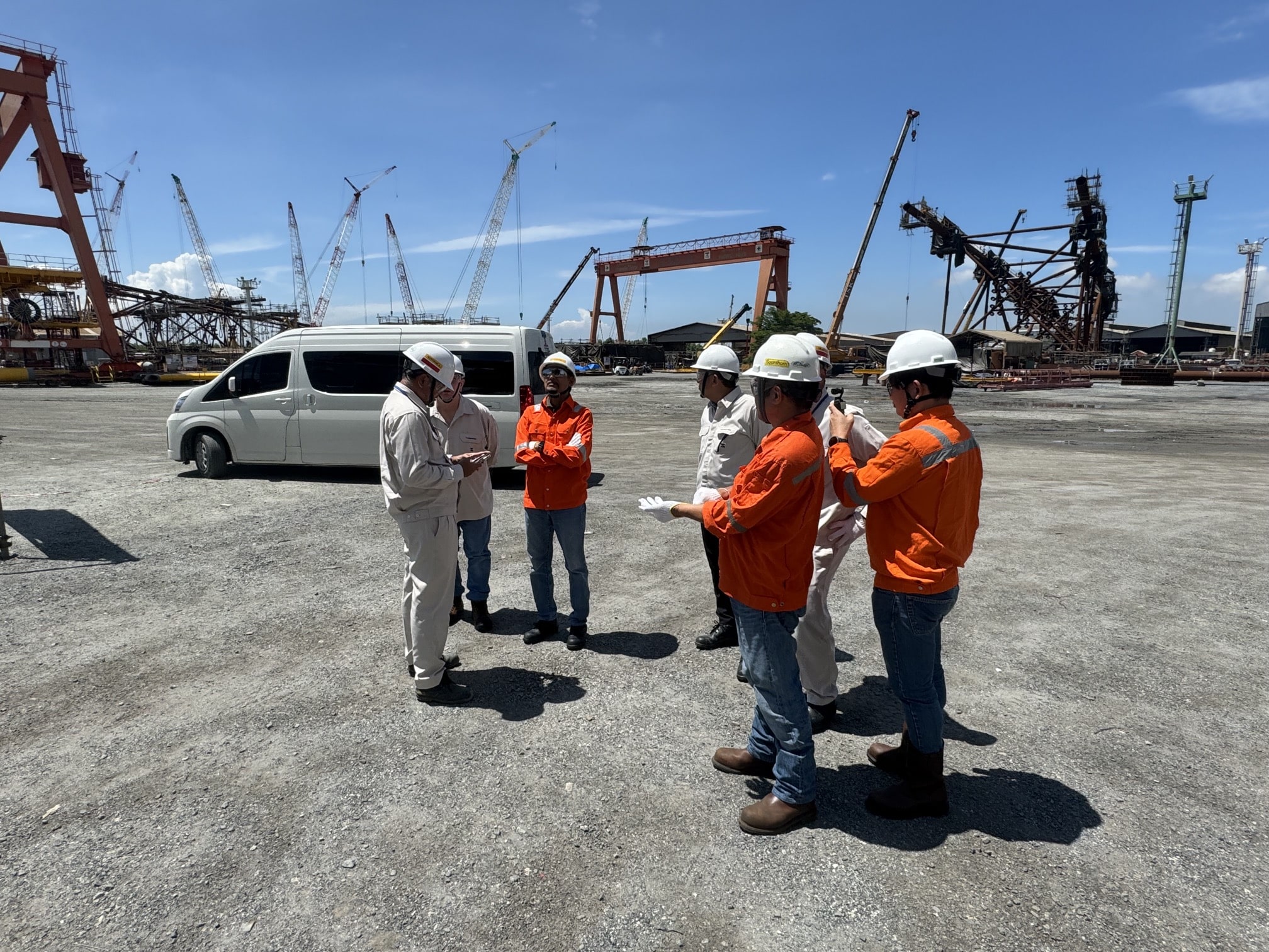 Mr. Warren Ford – Director & Mr. Rao – Engineering and Project Director has taken time out to pay a visit TNS at Bangpakong Fabrication yard on 26 September 2024. TNS management led by Mr. Masaya Watanabe – Chief Executive Officer & Mr. Virach Tantivipa – Chief Operating Officer have attended this event. For the yard tour, Mr. Wuttisak Jantarapa – Senior Executive Officer has led the tour.