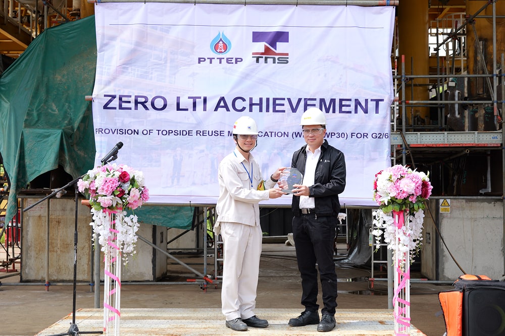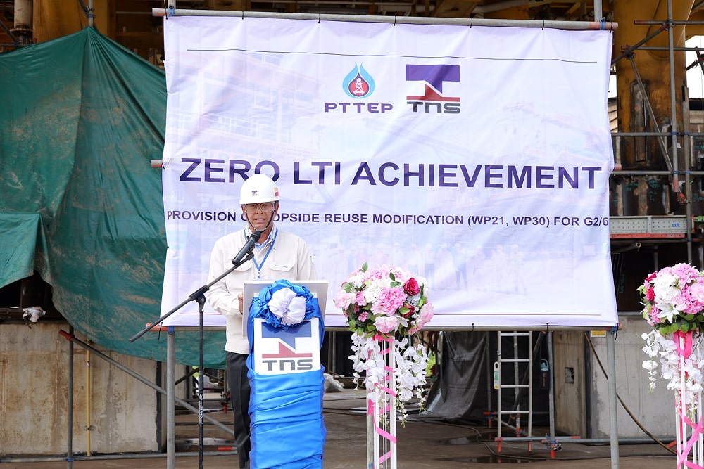 TNS has organized ZERO LTI Free & Work Completion Ceremony for Topside Reuse Modification (WP21, WP30)G2/61 on September 19, 2024 at ITD Yard, Samut Prakan. The ceremony was completed by message of congratulation and thank you remark on this achievement from Mr. Wuttisak Jantarapa – TNS Senior Executive Officer and Mr. Peerapong Chailapo – PTTEP Senior Vice President, Engineering Execution Division together with presented Excellent SSHE Performance Achievement Certificate o TNS and subcontractor representatives, there are 7 awards and Appreciation and Excellent Support Certificate to Italian-Thai Development PLC.