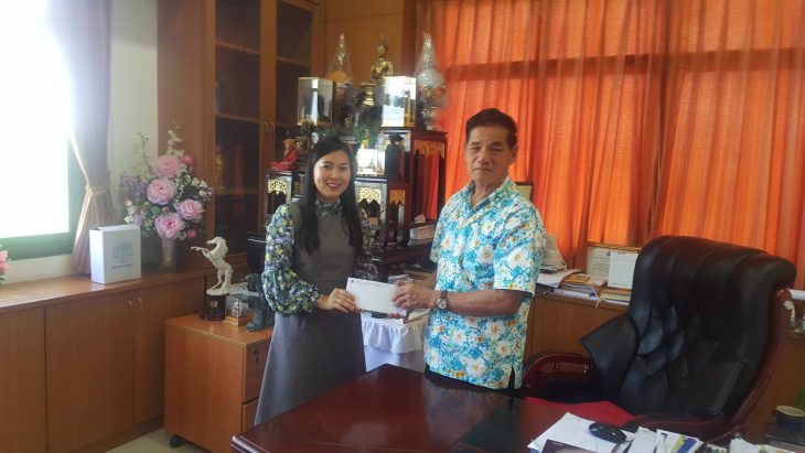 11 April 2018 – K.Patteera Kitjanulak PR manager represented TNS to pass the cash amount 10,000 THB to support the off-season robe offering ceremony at Wat Mai Songkrohrat (Wat Phee Khud) through K.Jarun Ngasuwan, Bangpakong Promthep Rangsan Mayor.