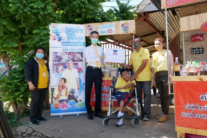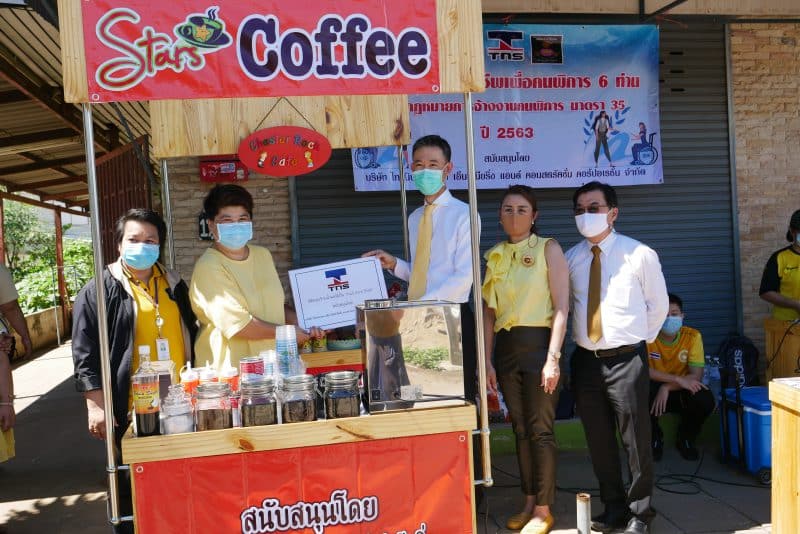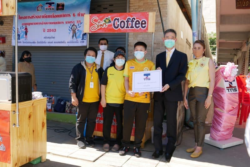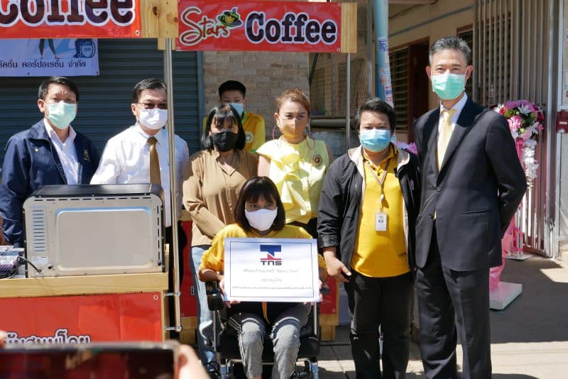On 16 July 2020 – TNS has already delivered the 1st Stars coffee shop, Bakery Shop, Snow ice (shaved) shop and Fruit Smoothie Shop to 6 disabled people, its location is at the “Khlong Luang, Pathum Thani”. TNS Management team led by Mr. Hiroyuki Kurosaki –TNS CEO, Mr.Somchai Sampeenong – SEO, Mr.Akkaphop Sukprasart – GM and Ms.Piyakarn Aj-niyom Human Development Officer, Disability Services Center of Pathum Thani and Ms.Saowapak Srinet Labour Expert Official from Bangkok Employment Office Area 3 have joined this remarkable ceremony.