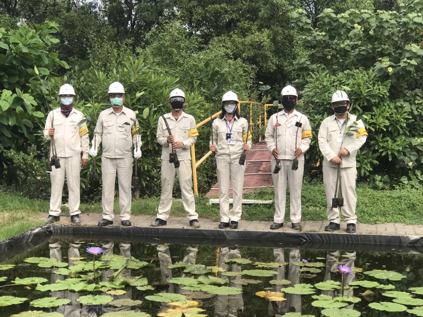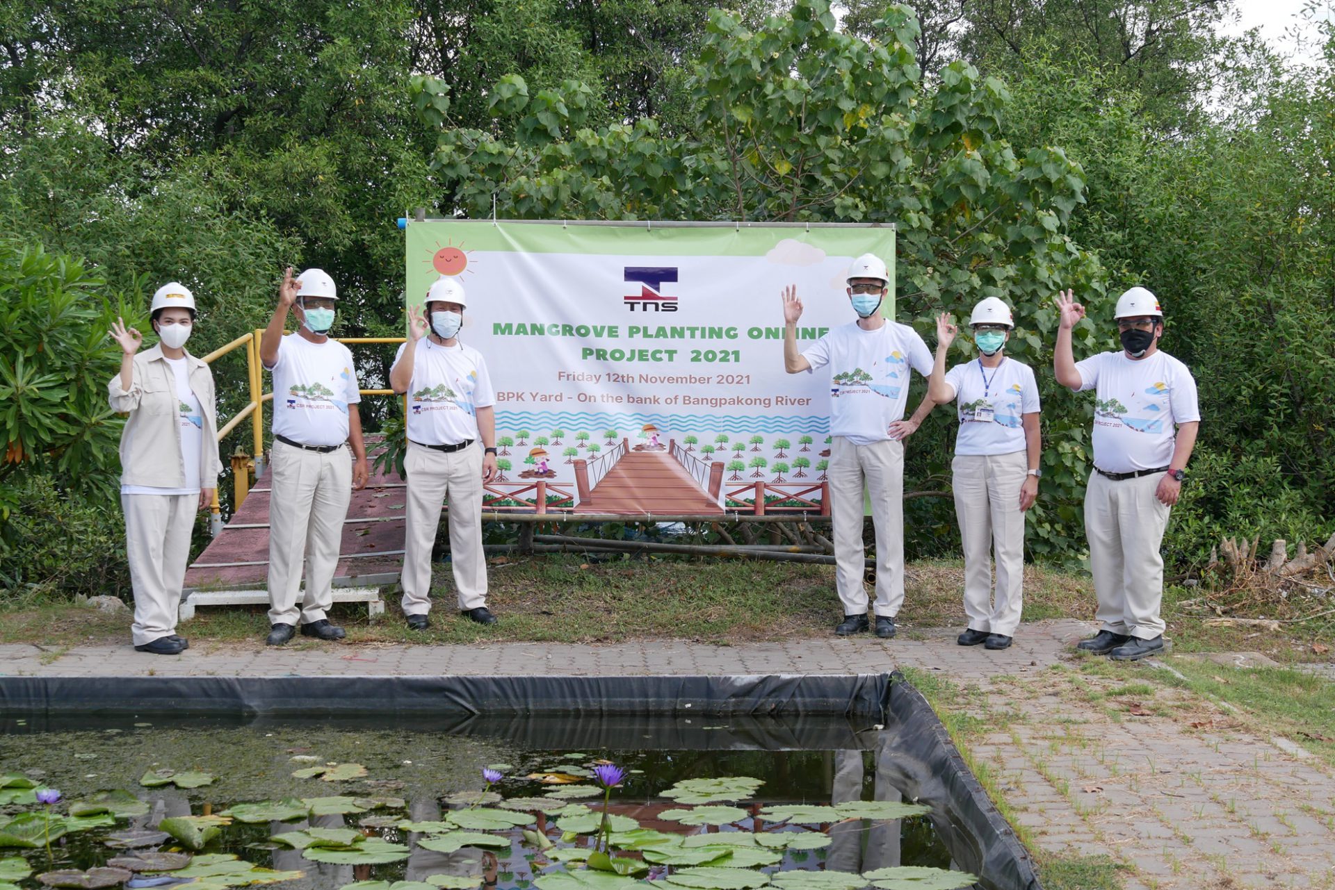 12 November 2021 – TNS management led by Mr. Hiroyuki Kurosaki – CEO have jointly Mangrove Planting Online Project (New Normal Event) on the bank of Bangpakong river – Bangpakong Yard, due to the spreading of COVID-19 outbreak, we follow to the government’s guidance on COVID-19’s preventive measures. This year, we have arranged the Mangrove Planting Online Project by inviting employee who wish to plant the trees to register online and we have an operation team (Yard facilities) to planted 200 mangrove trees for us at Bangpakong yard.