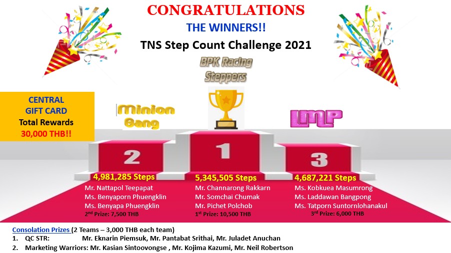PR & CSR are pleased to announce you the winners for TNS Step Count Challenge 2021.