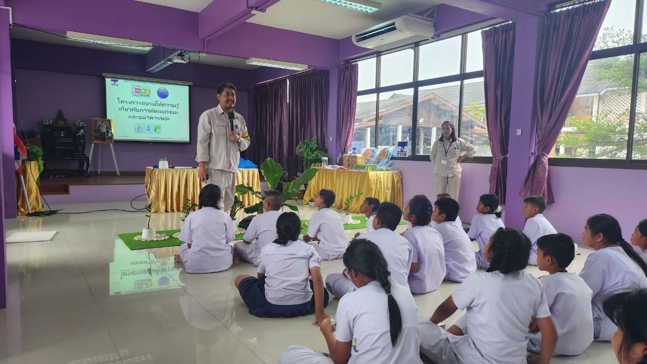 TNS has taken the initiative to educate students of Ban Tha Kham Tang Trong Chit 10 School, Bangpakong about the “Rycycle Waste Bank Project” on 20 September 2024 aiming to raise awareness of waste management and the value of recycling. The program, introduced in schools, teaches students how to properly sort and collect recyclable waste, turning it into a source of income.